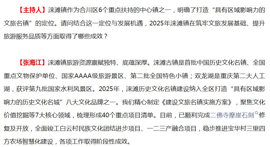 为进一步汲取思想力量、凝聚行动共识,奋力书写区域奋斗新篇章,近日,合川区融媒体中心推出“奋发建新功 实干创未来——学习贯彻区委十五届十一次全会精神专题访谈”,邀请我区部分部门、镇街负责人围绕贯彻落实党的二十届四中全会及市委六届八次全会、区委十五届十一次全会精神谈发展思路、行动举措,生动展示全会各项举措落实成效和未来发展蓝图。
