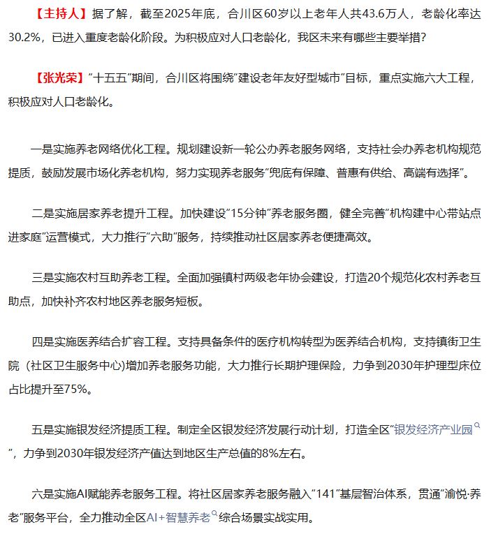 为进一步汲取思想力量、凝聚行动共识,奋力书写区域奋斗新篇章,近日,合川区融媒体中心推出“奋发建新功 实干创未来——学习贯彻区委十五届十一次全会精神专题访谈”,邀请我区部分部门、镇街负责人围绕贯彻落实党的二十届四中全会及市委六届八次全会、区委十五届十一次全会精神谈发展思路、行动举措,生动展示全会各项举措落实成效和未来发展蓝图。